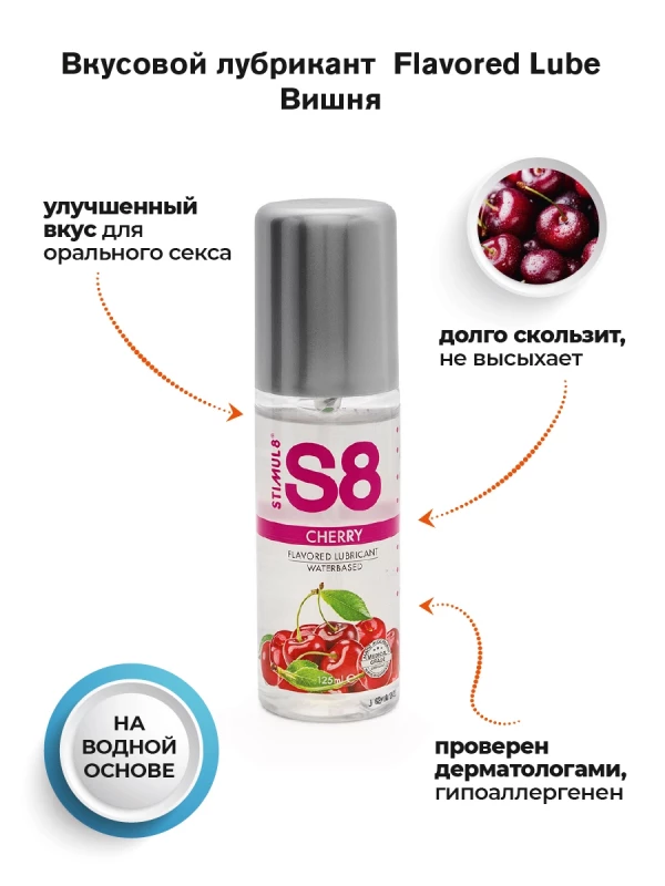 Восхитительный гель с ароматом и вкусом вишни на водной основе "Stimul 8 Cherry" - идеальная немецкая классика для самых чувственных моментов!